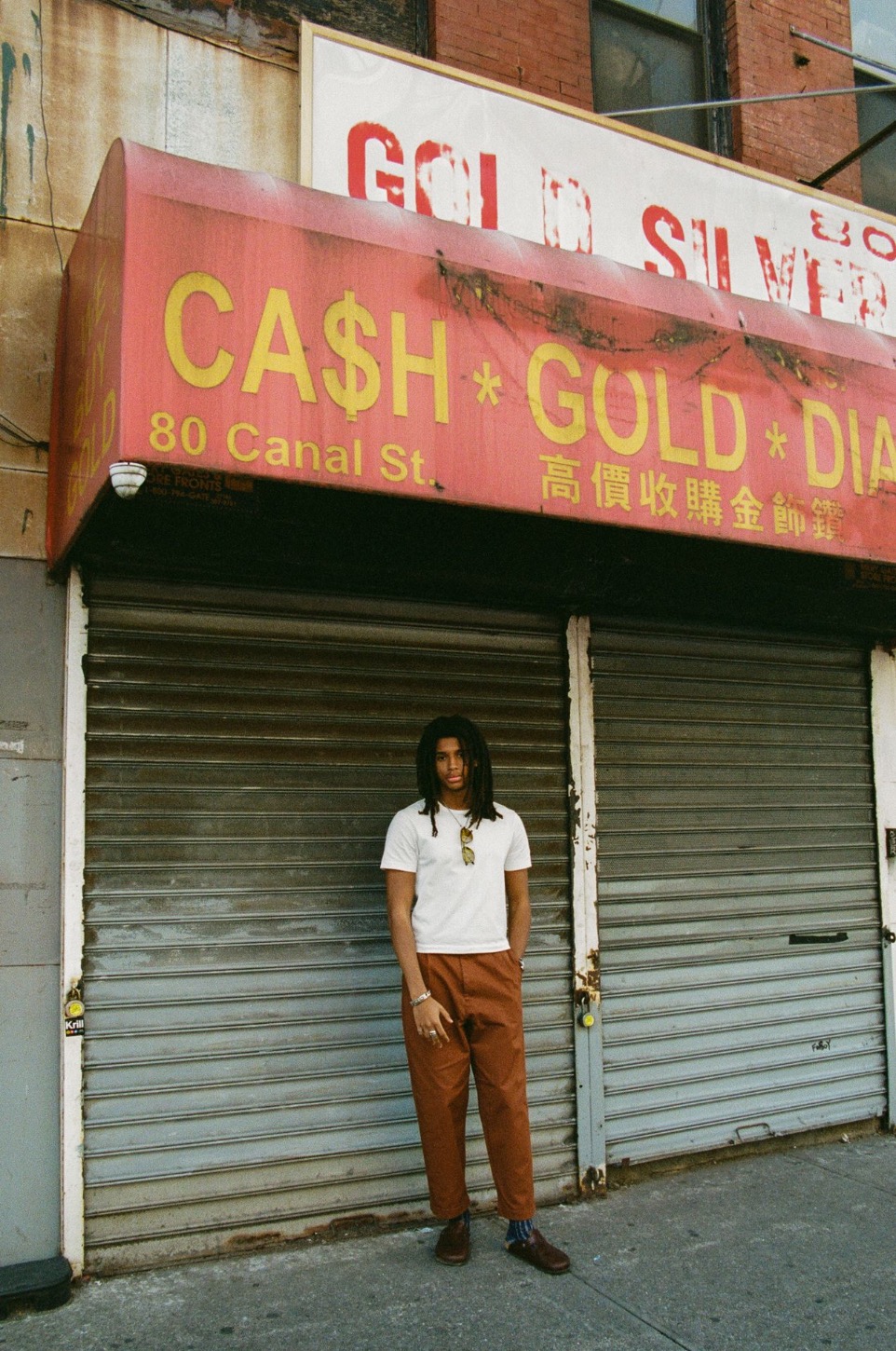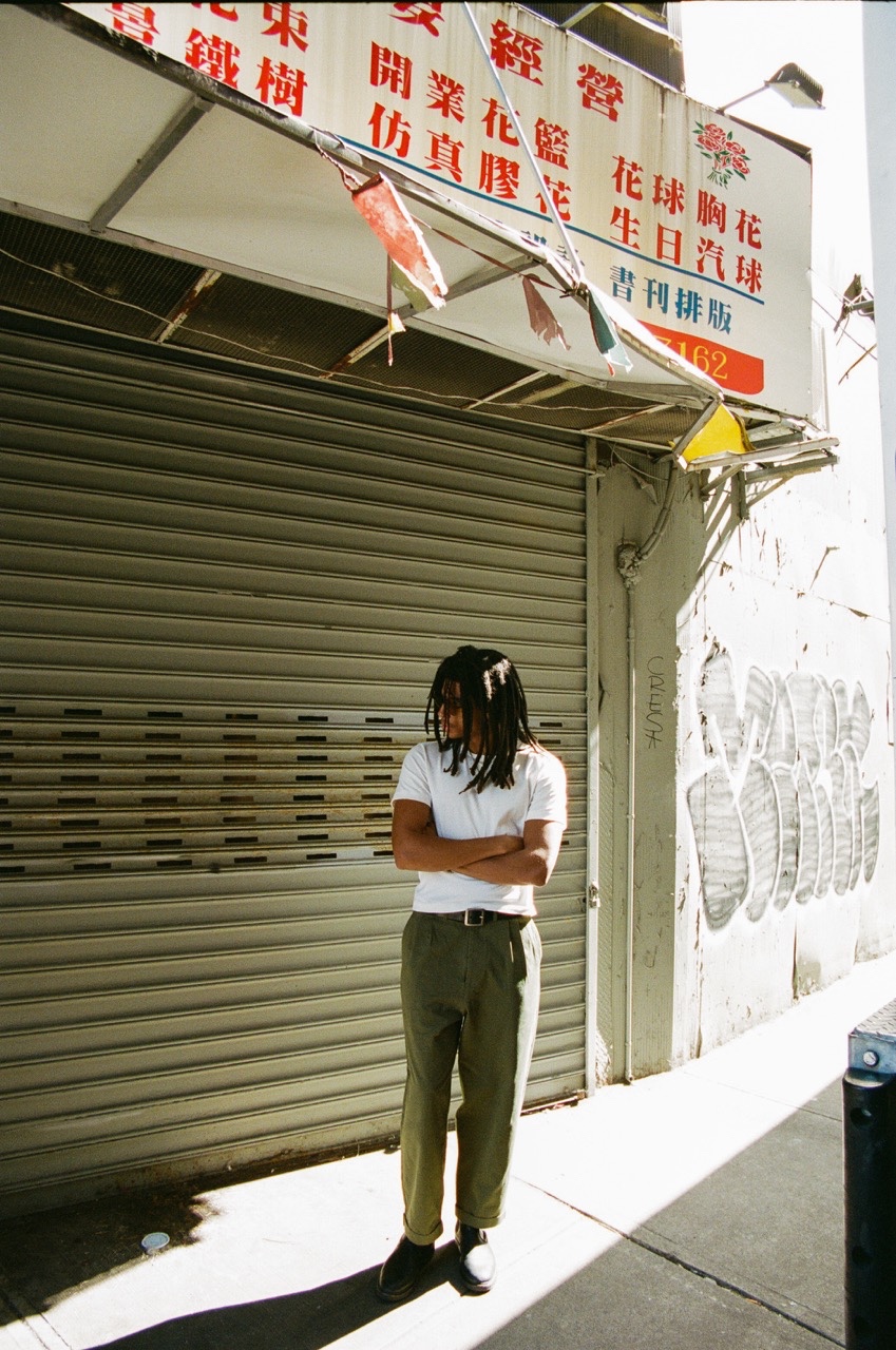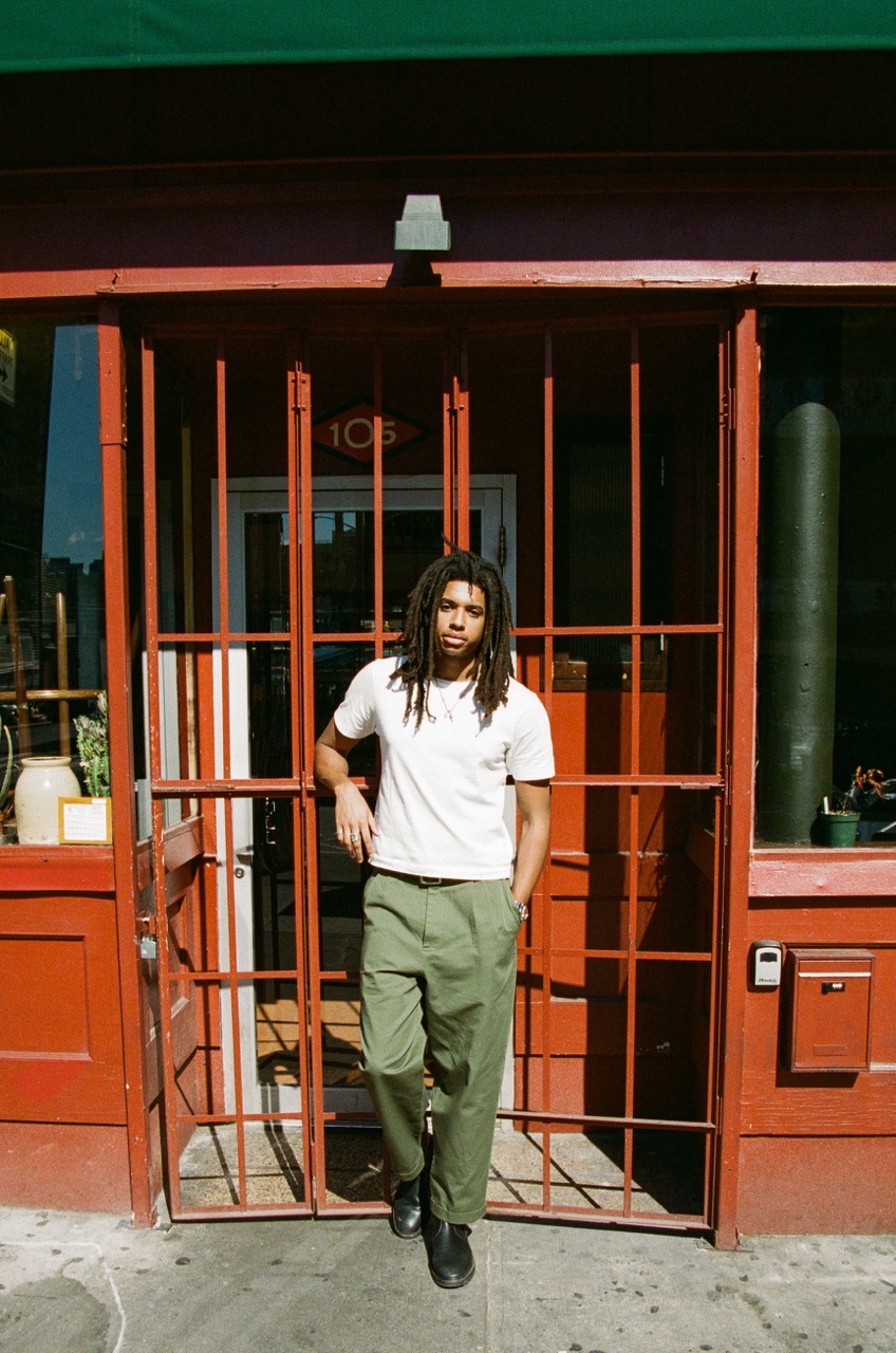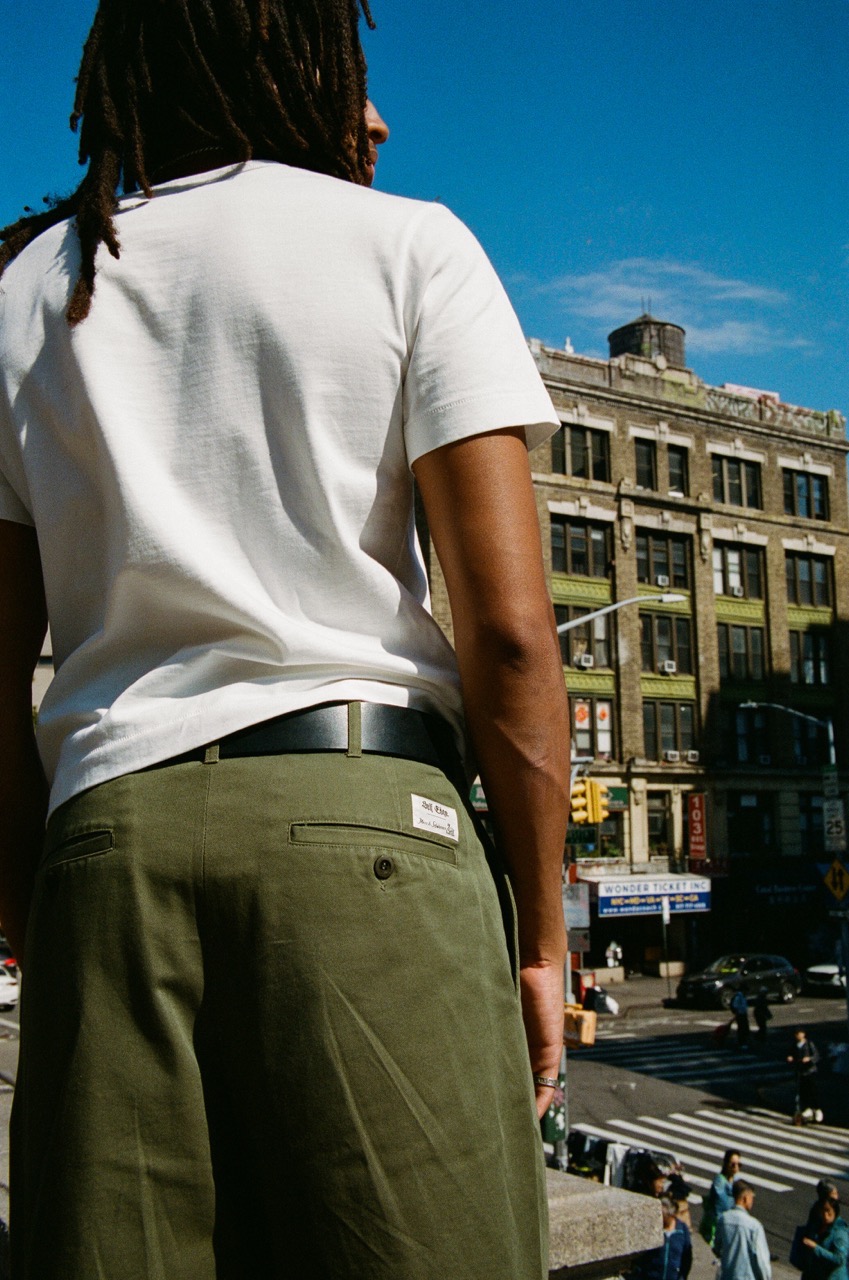 These have a newly developed wide leg fit, are lightly pleated, are made out of a 9.2oz organic cotton twill textile that's garment-dyed in two colors, and finished with a special Self Edge x Merz b. Schwanen vintage loom woven label and corozo nut fiber buttons.